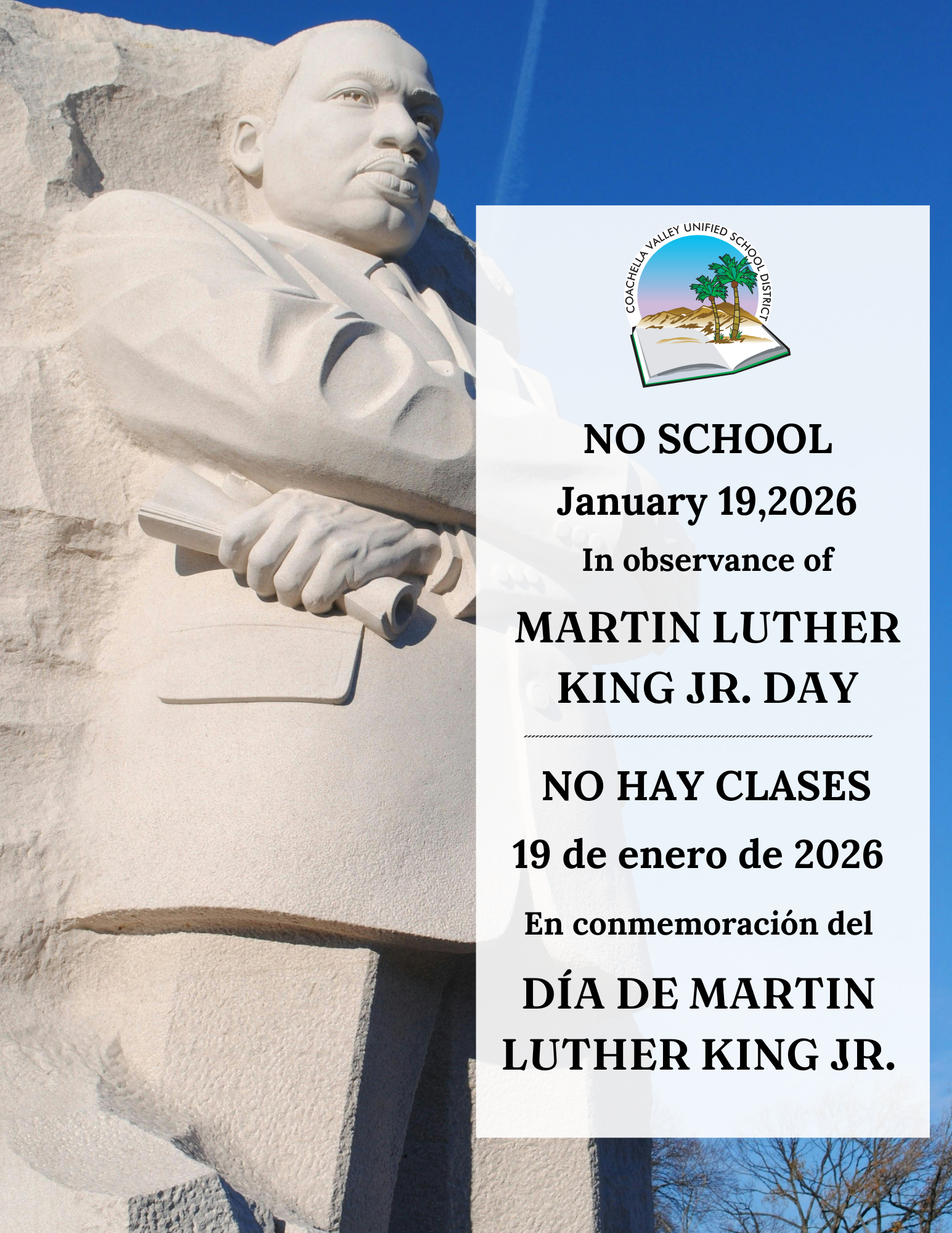 In Observance of MLK Day – No School Monday January 19, 2026